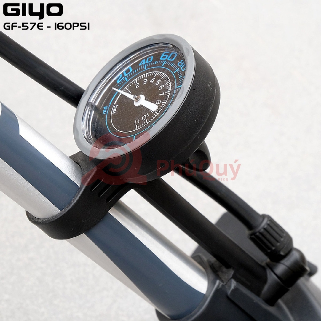 Bơm GIYO GF-57E Nhôm Có Đồng Hồ 160PSI Tem Vàng - Tem Xám Đầu Bơm 2in1