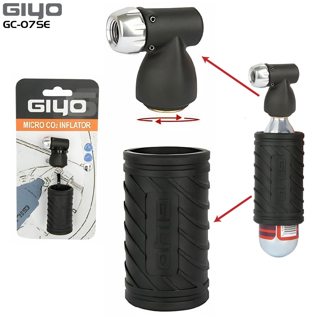Hiệu: GIYO Model: GC-07SE Đầu bơm CO2 dùng được cho Van Pháp (F/V) & Van Mỹ (A/V), van xe đạp, van gạo và van Honda Vòi bơm và thân vòi bằng nhôm chắc chắn (Aluminium body) Xuất xứ: Taiwan, Made in Taiwan Tương thích với các bình nén CO2 16gr