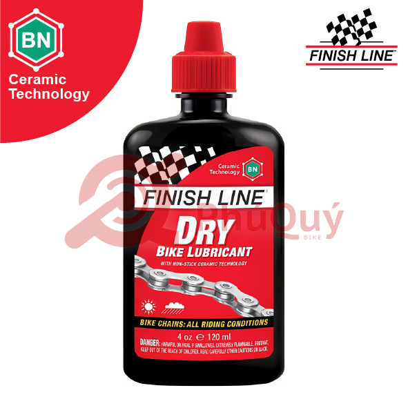 Dầu bôi Finish Line Ceramic Technology Dry Lube được khuyên dùng để đi trên đường hoặc địa hình trong môi trường khô, bẩn, bụi hoặc điều kiện ẩm ướt vừa phải (mưa nhẹ). Dầu bôi trơn khô cũng có thể được sử dụng trên cùi đề, cần số, cáp và điểm xoay phanh. Dầu bôi trơn khô của Finish Line cung cấp hiệu quả hệ thống truyền động tối ưu mà không thu hút quá nhiều chất gây ô nhiễm mài mòn.
