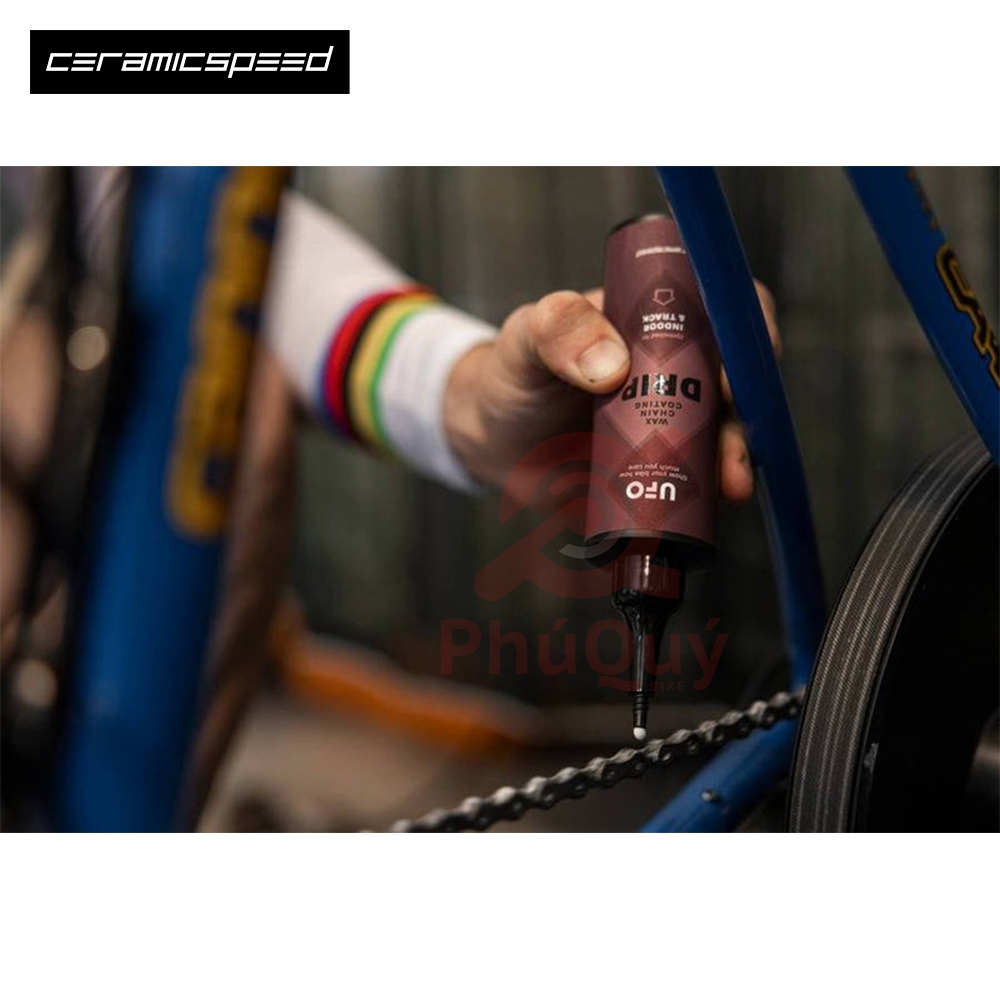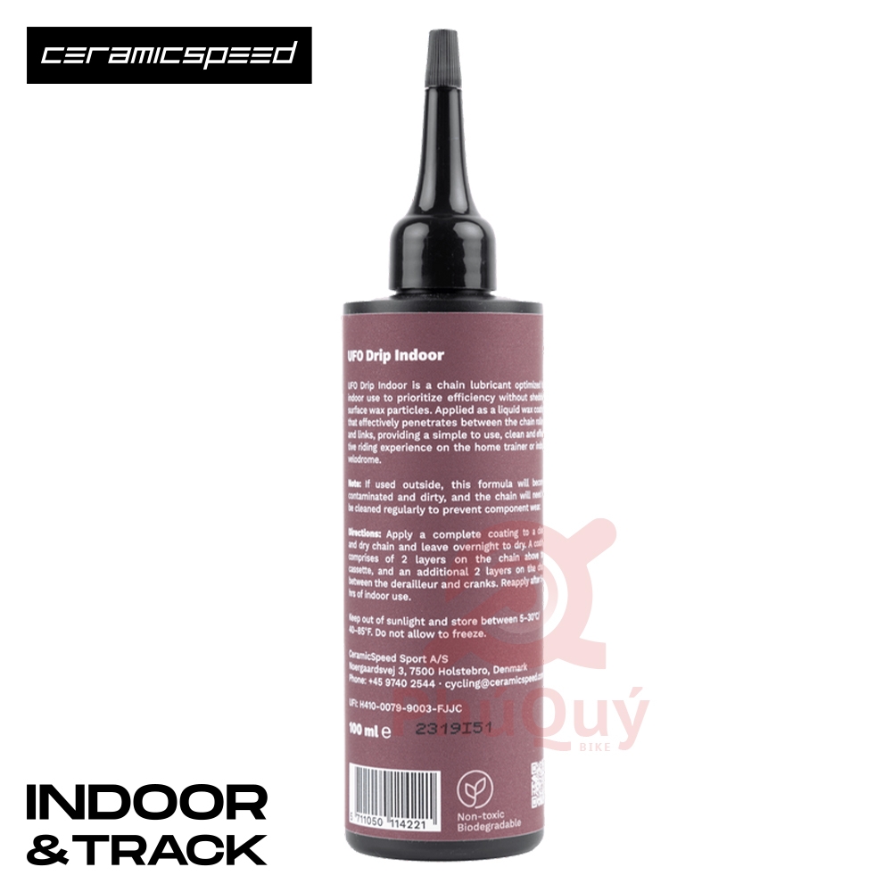 Để hoàn thiện dòng sản phẩm UFO Drip, chúng tôi đã phát triển UFO Drip for Indoor. Lớp phủ xích bằng sáp có nhiều lợi ích, nhưng cũng có xu hướng làm bong lớp sáp bề mặt thừa sau khi sử dụng lần đầu. Với UFO Drip for Indoor, sự cân bằng giữa sáp và chất điều chỉnh ma sát đã được điều chỉnh để tối đa hóa hiệu quả trong điều kiện sạch sẽ với lượng tích tụ bề mặt tối thiểu.