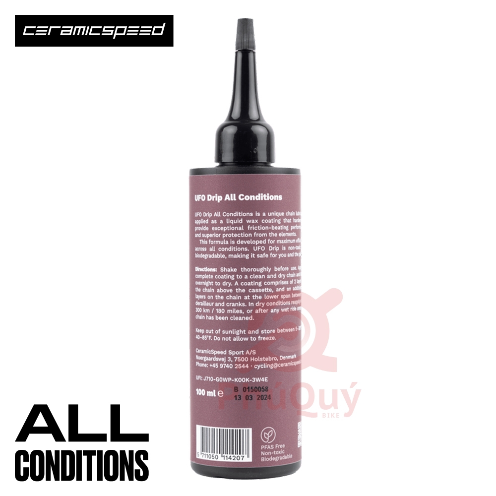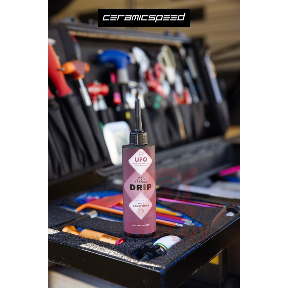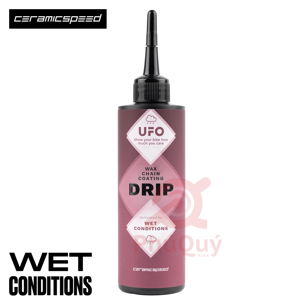 Đối với những người lái xe trong điều kiện ẩm ướt thường xuyên, UFO Drip for Wet Condition mới của chúng tôi đã được phát triển độc đáo để tối đa hóa lợi ích của chất bôi trơn xích bằng sáp, đồng thời chống lại sự hư hỏng do điều kiện lái xe ướt.