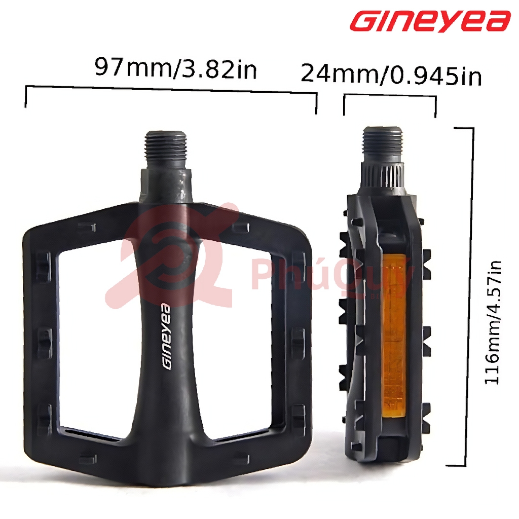 Pedal Nhựa GINEYEA Trục Bi Gắn Được STRAP Cho FixedGear, Nhẹ, Có Miếng Phản Quang, Gắn Được Strap FixedGear