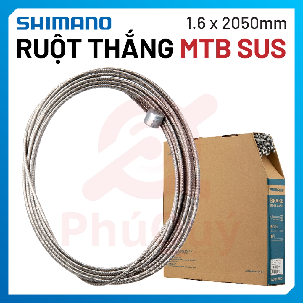 Ruột dây cáp thắng MTB Shimano SUS là dòng cáp thép không gỉ (Stainless) chính hãng, nổi bật với độ bền cao, dẻo dai và hạn chế gỉ sét, giúp phanh xe mượt mà. Sản phẩm chuyên dụng cho xe đạp địa hình, thường có kích thước tiêu chuẩn, chịu lực tốt và chống tưa đầu khi cắt.
