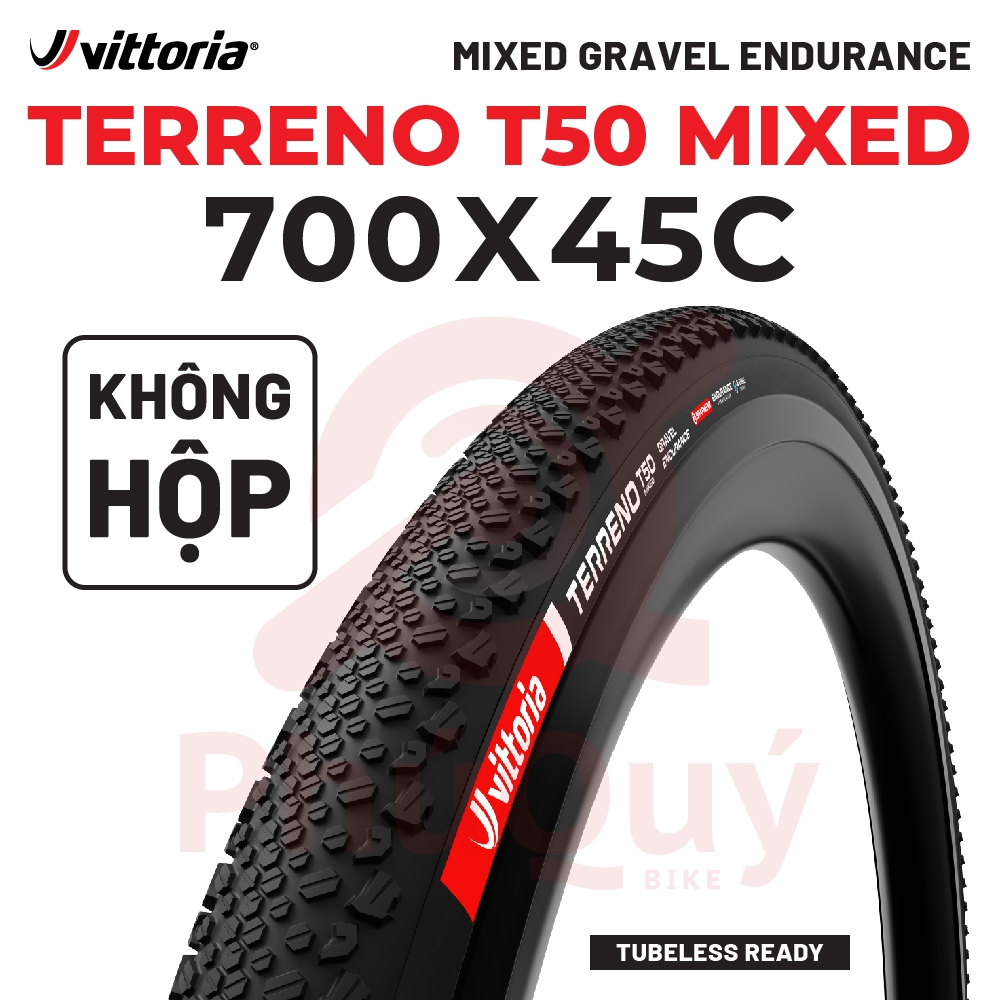 Vỏ Vittoria Terreno T50 Mixed 45-622 không hộp Gravel Endurance Full Đen G2.0 (VAT)